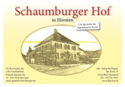 Schaumburger Hofin HorstenIhr Restaurant fürjede Familienfeier. Räumlichkeiten für10 - 100 Personen undeinen gemütlichen Biergarten.Inh. Stefan Hellmann Im Dorfe 19 31542 Bad Nenndorf Tel.: (05723) 4913 www.shg-hof.deDer Spezialist für Argentinische Steaks