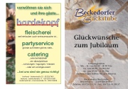 verwöhnen sie sich und ihre gäste...fleischereiweil einkaufen auch vertrauenssache ist...partyservicegründe zum feiern gibt es viele...catering...eine betriebsfeier...ein dienstjubiläum ...schulungen / tagungen / messen ...oder ein sonstiges event...bei uns sind sie genau richtig!lindhorst - bäckerstraße 32 - 05725/7461 lindhorst - bahnhofstraße 11 - 05725/7010301 niedernwöhren - brunnenstraße 19 - 05721/2909Glückwünsche zum JubiläumÖffnungszeitenMo. - Fr. von 05.00 - 18.00 UhrSa. von 05.00 - 13.00 UhrSo. von 07.00 - 11.30 UhrAn Feiertagen haben wir geschlossen.Beckedorfer Backstube Westerntor 1 · 31699 Beckedorf Telefon: (05725) 15 24 · Fax: (05725) 91 58 57