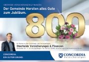 OBERHEIDE VERSICHERUNGEN & FINANZENDer Gemeinde Horsten alles Gute zum Jubiläum.Ihr Partner in allen Sicherheits- und Vorsorgefragen.Oberheide Versicherungen & FinanzenNordsehler Str. 3 · 31714 Lauenhagen · Tel. 0 57 21/ 29 48 · versicherungen.oberheide@concordia.deCONCORDIA.EIN GUTER GRUND.