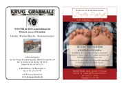 Praxis für PodologieBritta Partschmed. Fußp ege u. Kosmetikge-g/rSabteminamle.tdzemeisterhofskapelle, Hannoversche Str. 609 51, Mobil: 0160/ 90 30 91 794, Tel. (0 57 23) 91 33 81 www.krug-grabmale.deAn seine Füße lässt manschließlich nicht jeden.Gründliche Arbeit, neueste Hygienestandards und die vertrauensvolle Atmosphäre zeichnen die Fußp egepraxis in Horsten aus.Probieren Sie doch mal eine Kosmetikbehandlung, Gesichtsmassage oder Make-Up aus.Machen Sie Ihren persönlichen TerminBritta Partsch · Staatl. geprüfte Podologin Ostende 14 · 31542 Bad Nenndorf/Horsten Tel: 0 57 23 – 35 62Parkplätze vor der TürSeit 1964 in drei Generationen im Dienste unserer Kunden Inhaber: Michael Busche / Steinmetzmeisterin Barsinghausen, An der Neuen Friedhofskapelle, Hannoversche Str. 60Seit 1964 in drei Generationen im Dienste unserer Kunden Tel. (05105) 586950, Fax 586951, Mobil: 0160/90309179@krug-grabmale.de in Rodenberg, Am Sportplatz 4, Tel. (0 57 23) 91I3n3ha8b1er: Michawewl Bwu.ksrcuh in Barsinghausen, An der Neuen Fried Tel. (05105) 586950, Fax 586Seit 1964 inindfor@ekirugG-geranbmearlea.dteionineRnodeimnberg, Am Sportplatz Dienste unserer Kunden.inhaber: Michael Busche / steinmetzmeistern im Dienste unserer Kunden che / Steinmetzmeisteredhofskapelle, Hannoversche Str. 60 69 51, Mobil: 0160/ 90 30 91 79z 4, Tel. (0 57 23) 91 33 81www.krug-grabmale.dein Barsinghausen,An der neuen Friedhofskapelle, hannoversche str. 60 tel. (0 51 05) 58 69 50, Fax 58 69 51,Mobil 01 60 / 90 30 91 79in rodenberg: Am sportplatz 4, tel. (0 57 23) 91 33 81info@krug-grabmale.dewww.krug-grabmale.deoes8