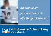 Wir gratulierenganz herzlich zum 800-jährigen Bestehen!Volksbank in Schaumburg www.vb-is.de